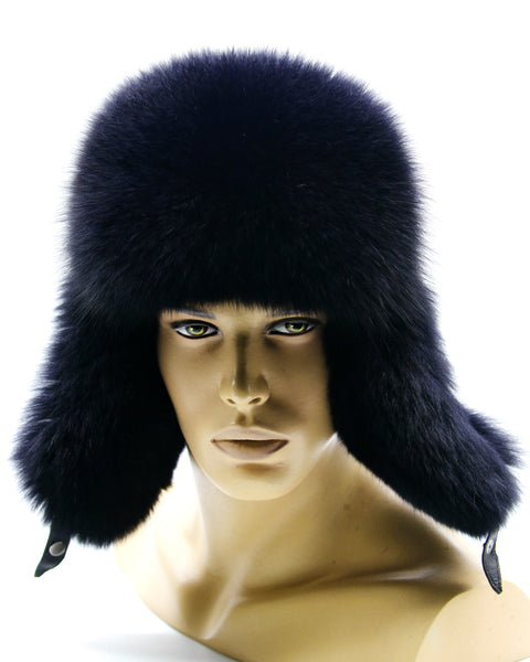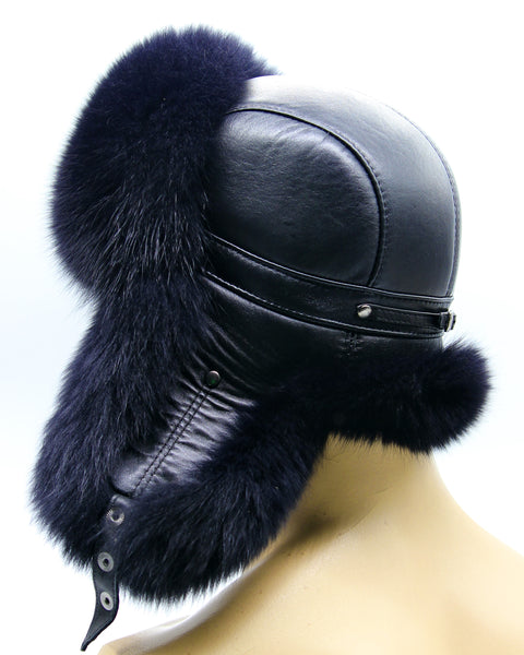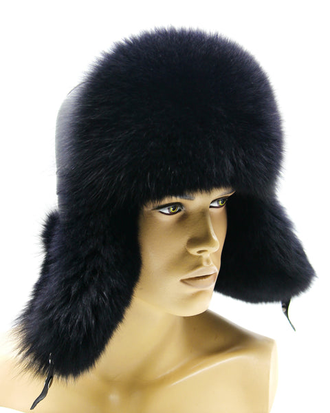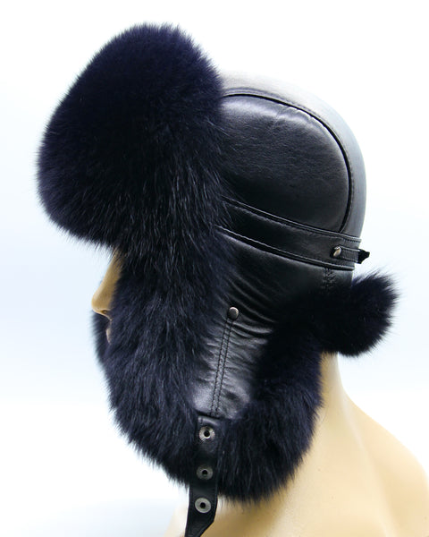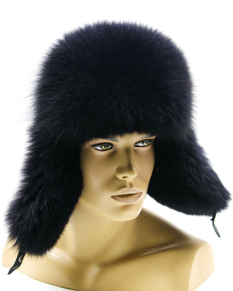 Black Arctic Fox Fur Hat and Leather Ushanka for Men