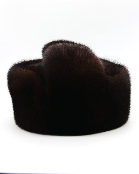 Classic brown mink fur ushanka hat with earflaps showing dense natural pile and rich color
