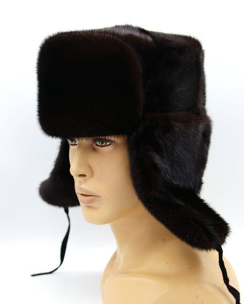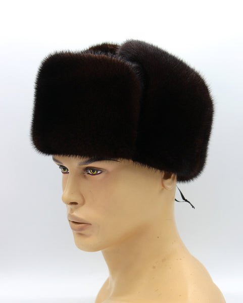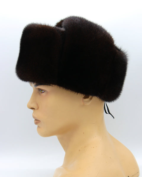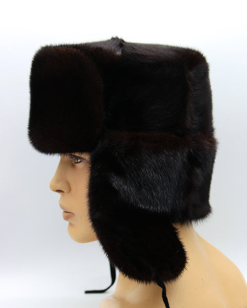 Classic Brown Mink Ushanka for Men - Handcrafted Natural Fur Winter Hat